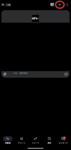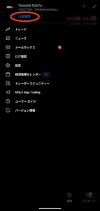 Androidの場合:MT5の画面左上の「三本線マーク」から左上の「口座管理」を選択し、右上の「+」を押します。