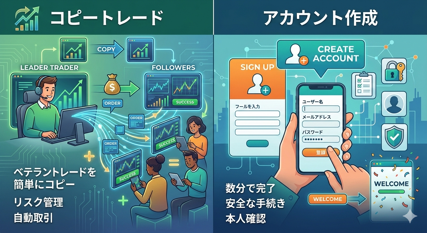 アカウント作成後は、速やかに本人確認(KYC)を完了させることが重要です。本人確認が未完了の状態では、利益の出金に制限がかかるだけでなく、後のステップで行うコピートレードのフォロー設定も進めることができません。マイページから「身分証明書」と「住所証明書」の2点をアップロードし、認証を済ませましょう。