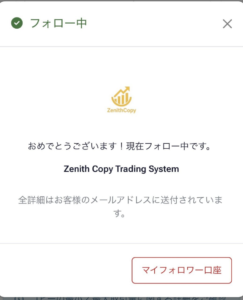 4. 「Zenith Copy Trading System」のフォロー設定